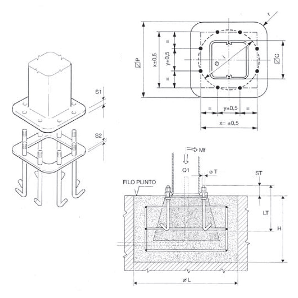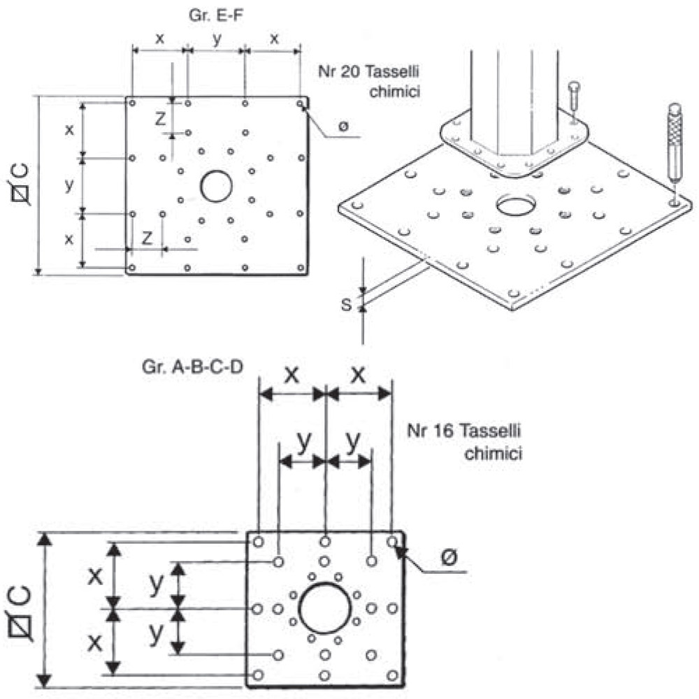 The column can be fastened to the floor using chemical bolts, eventually using a counter-plate allowing better distribution of forces.
