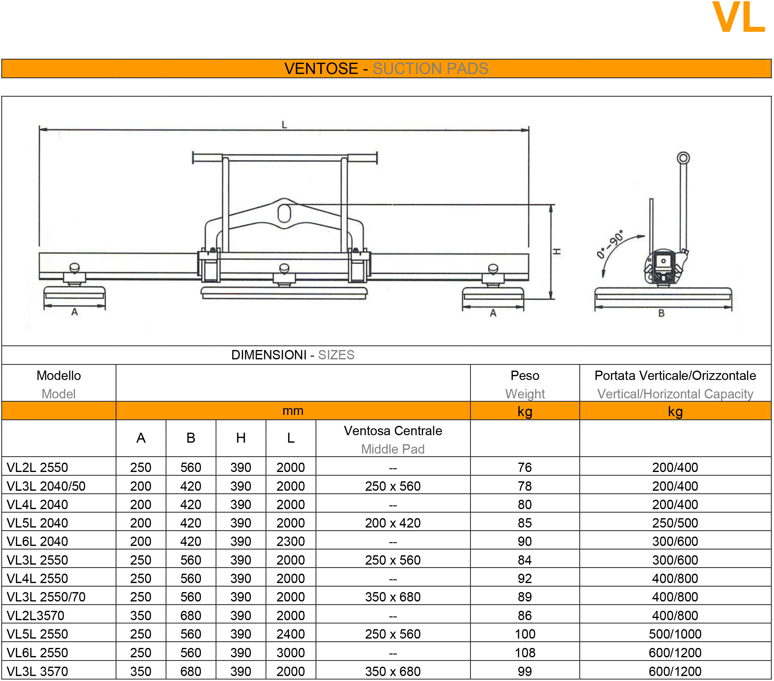 Ventosa di sollevamento per lapidei (sollevatore per marmo e granito) per la movimentazione di materiali solidi, non porosi con superfici piane.
