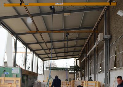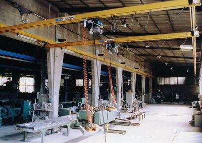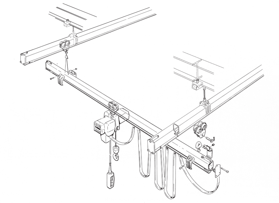 This system is modular designed to allow handling loads quickly, safely and efficiently above the working and production level, without limiting the floor space. The system can be adapted to the condition and dimensions of almost any application, can easily be extended any time. Almost effortless push/pull travel, equipped with an electric hoist, even in the version with on board vacuum unit with integrated control.